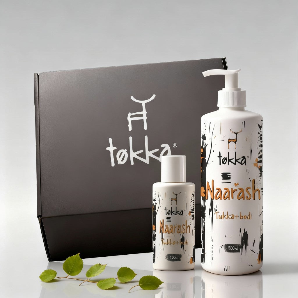 Naarash Tukka & Bodi 500 ml: Raikas Lappilainen pesuhetki nyt yhdessä pullossa.